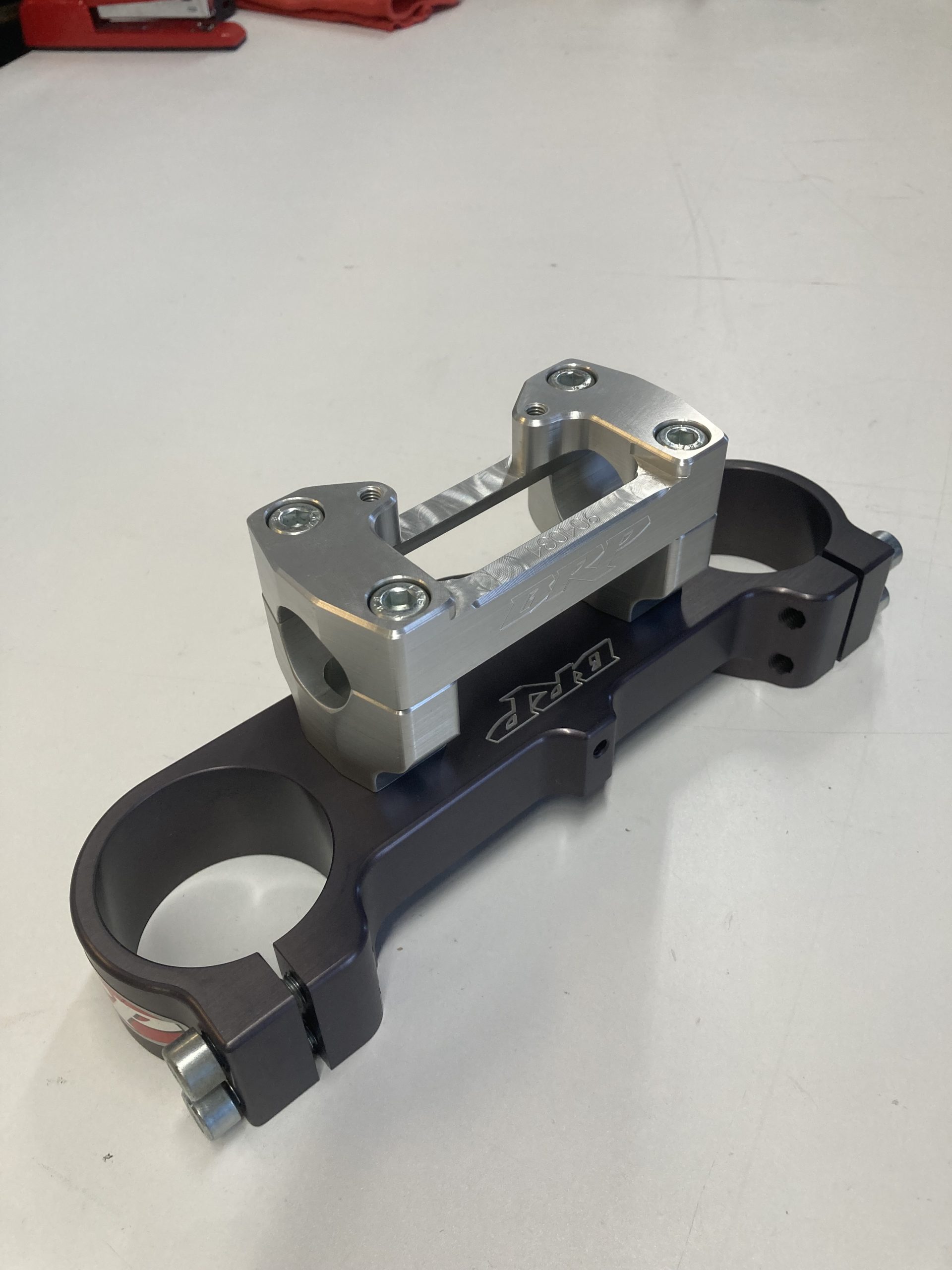 BRP triple clamps are manufactured to the highest quality standards from 6061-T6 billet aluminum which is far stronger than the OEM unit and comparable in weight. Our precision machined fork bores feature a 2 pinch bolt design that increases the clamping surface on the forks which in turn will help prevent fork twist in the event of a hard landing or crash.